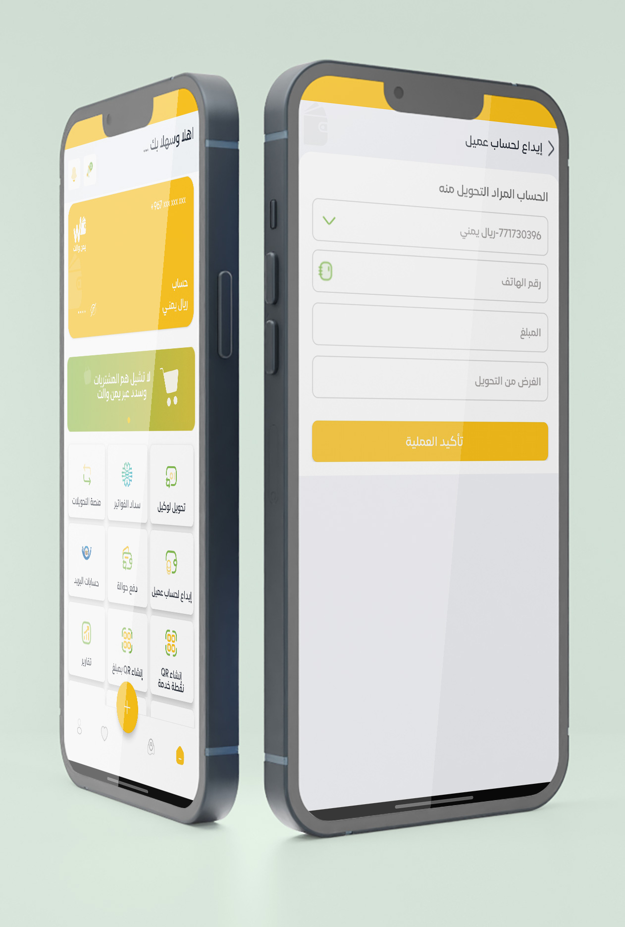 خدمة تمكّنك من الإيداع النقدي لحساب أي عميل لمحفظة يمن والت.