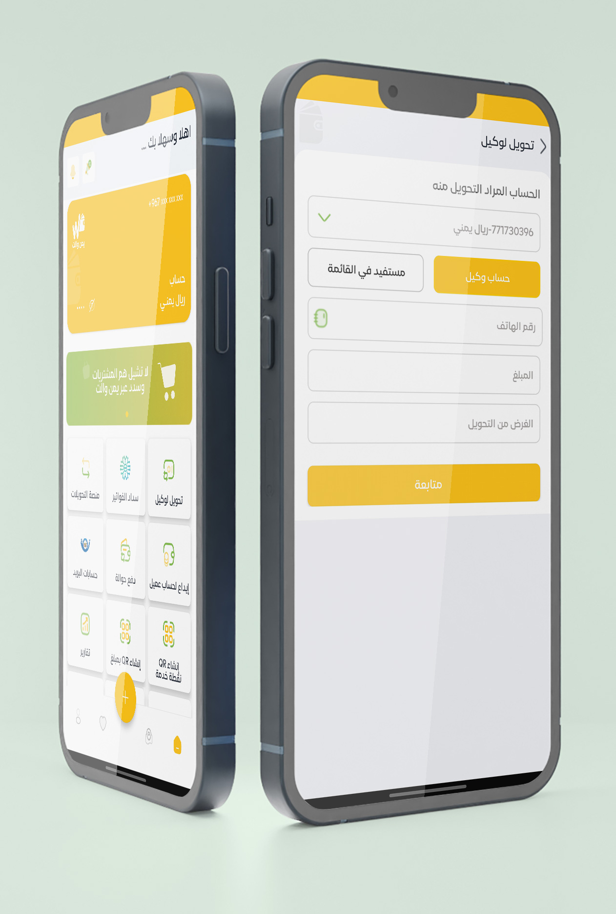 خدمة تمكنك من تحويل الأموال من حساب وكيل إلى حساب وكيل آخر في محفظة يمن والت